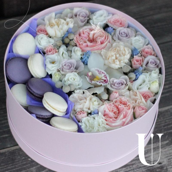 - Коробка круглая розовая (выс. 12 см, диам. 25 см) - 1 шт