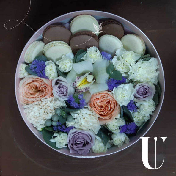 - Коробка круглая голубая (выс. 12 см, диам. 25 см) - 1 шт