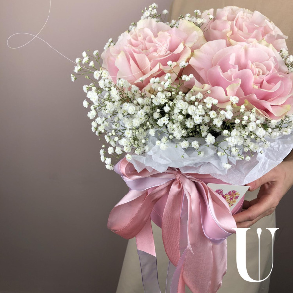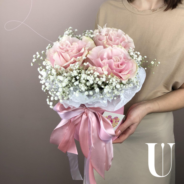 Нежная композиция в стиле французского прованса из роз, маттиол, альстромерий и зелени