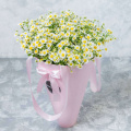 Розовая гортензия и белая гипсофила в розовой шляпной коробке