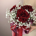 Композиция из гвоздик, роз и других цветов в белой коробке