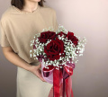 Розы Ред Наоми, шоколад и мишка мини в коробке формы сердца