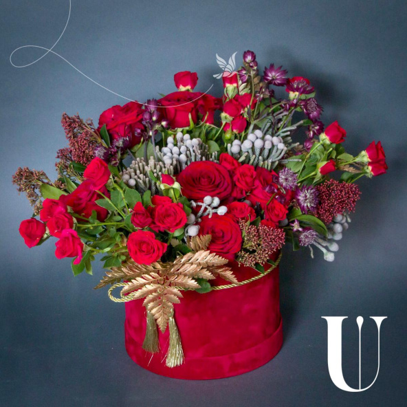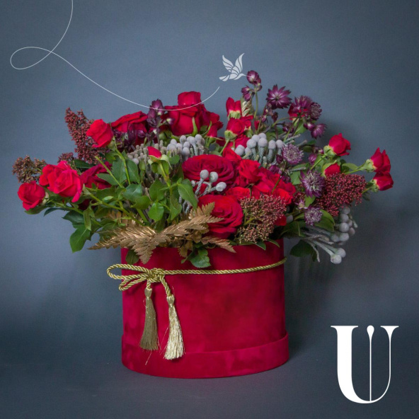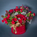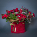 - Шляпная коробка бархатная (U), красная (выс. 15 см, диам. 20 см) - 1 шт