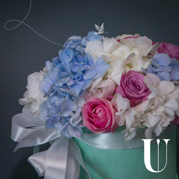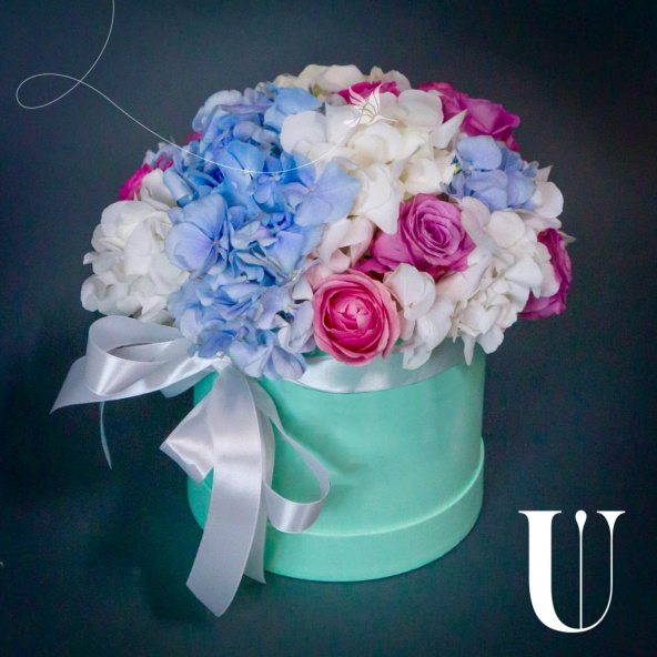- Шляпная коробка пеперлайн, голубая (выс. 15 см, диам. 15 см) - 1 шт