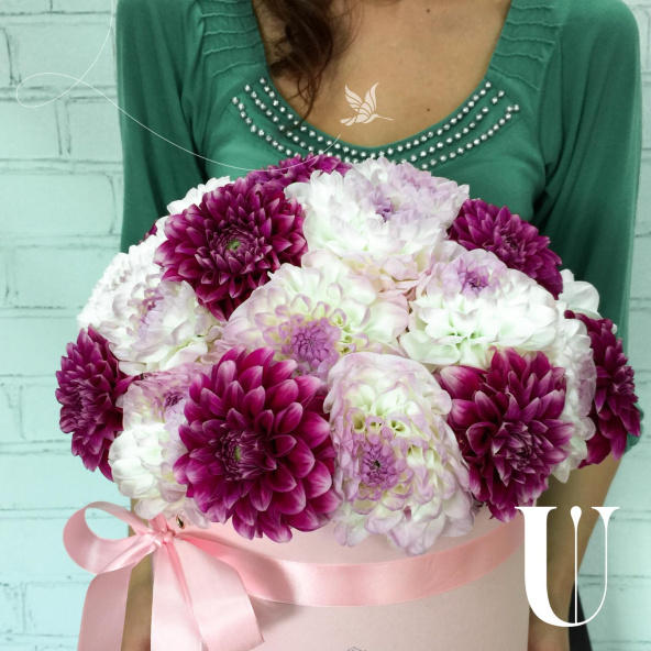 - Георгина Эвелин, бело-сиреневая - 15 шт