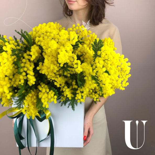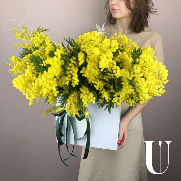 Коробочка с мимозой окутает волшебным ароматом и подарит отличное настроение получателю