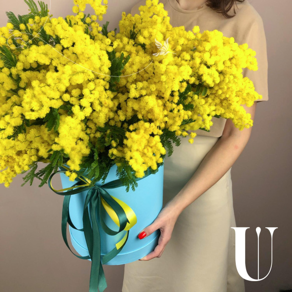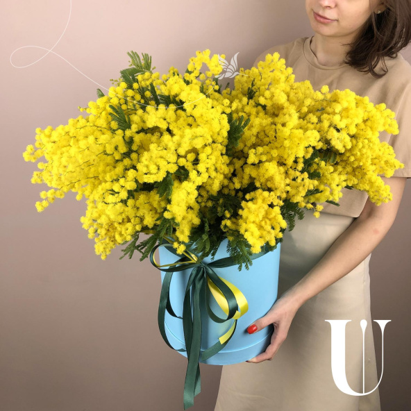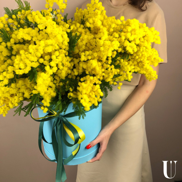 Коробочка с мимозой окутает волшебным ароматом и подарит отличное настроение получателю