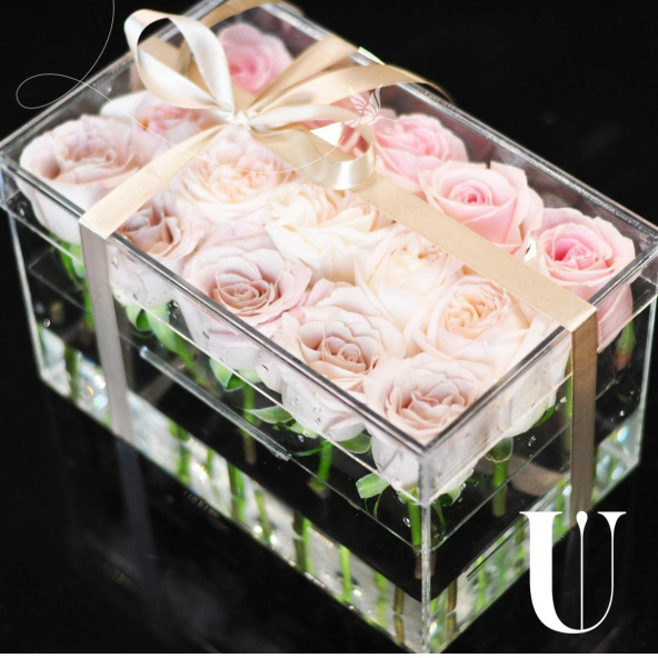 - Оригинальный аквабокс розами ( 15 шт ):
