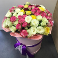 Яркая коробка из цветных кустовых роз 29 шт.