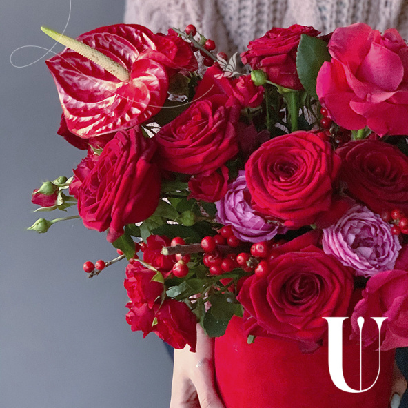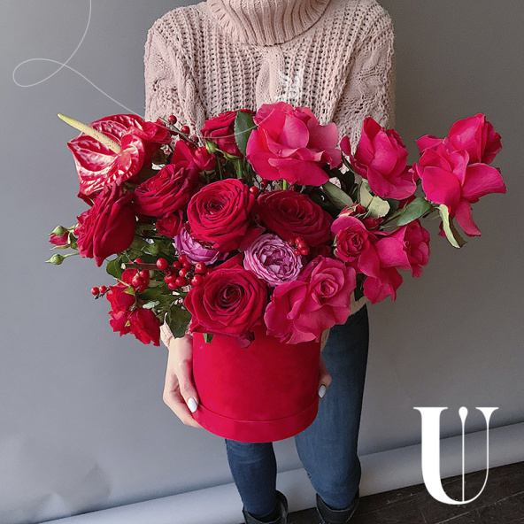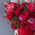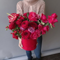 - Шляпная коробка бархатная, красная (выс. 23 см, диам. 20 см) - 1 шт