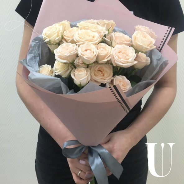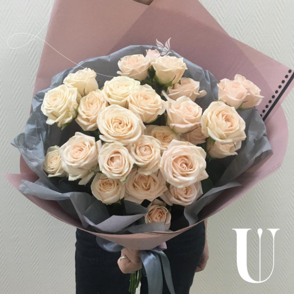 Букет из кенийских роз микс 21 штука в упаковке с лентой