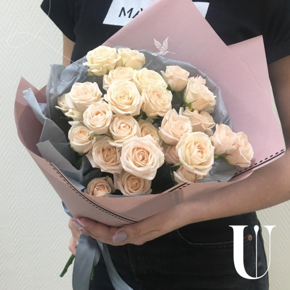 Роза Яна, кустовая, кремовая, 50 см. - 9 шт