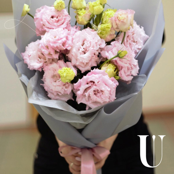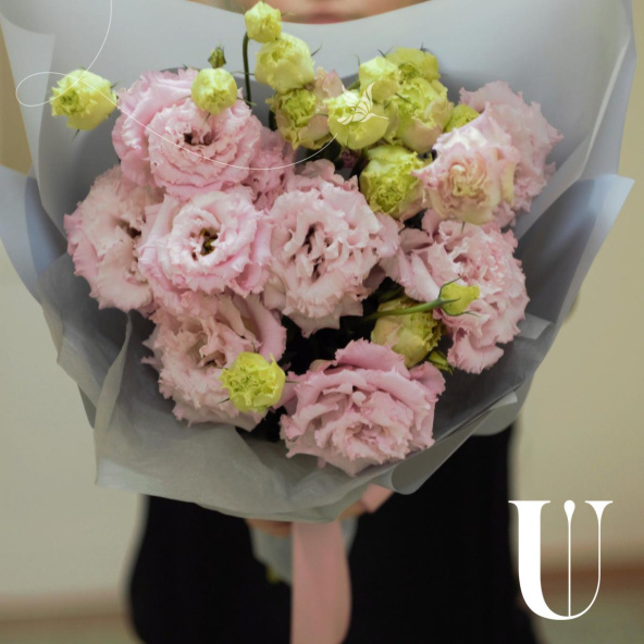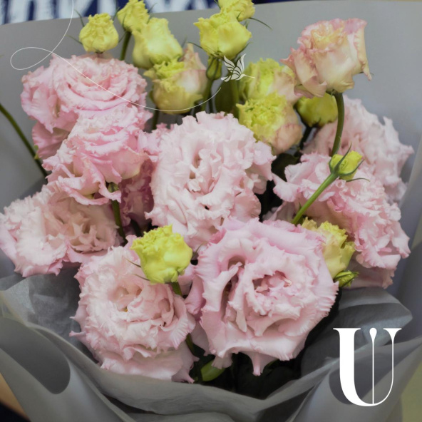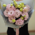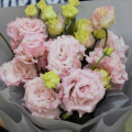 Монобукет из кремовых и розовых диантусолв в упаковке