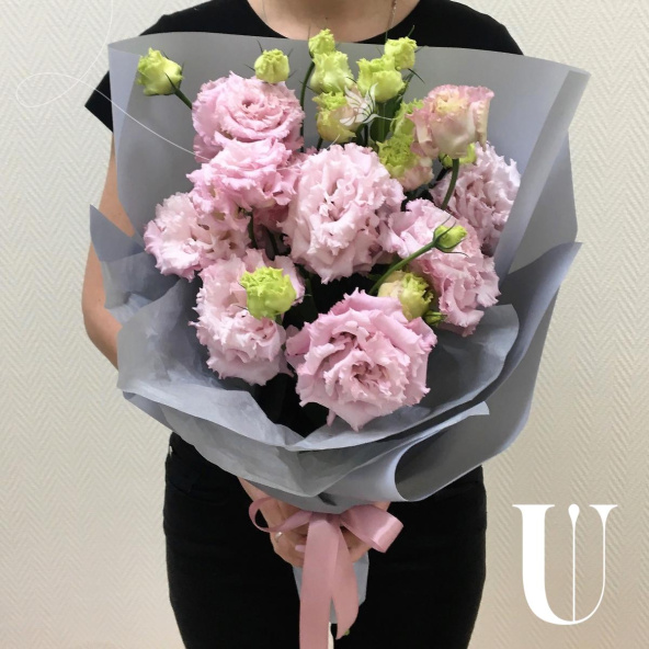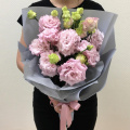 Букет из 11 розовых кустовых роз в дизайнерской бумаге