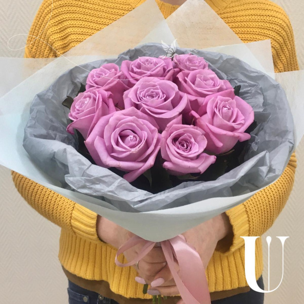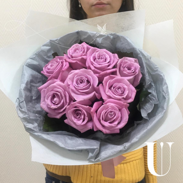Монобукет из микса 11 роз Кения в матовой упаковке