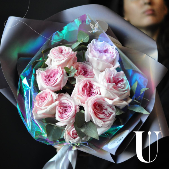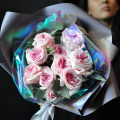 Нежные кустовые пионовидные розы в дизайнерской упаковке