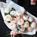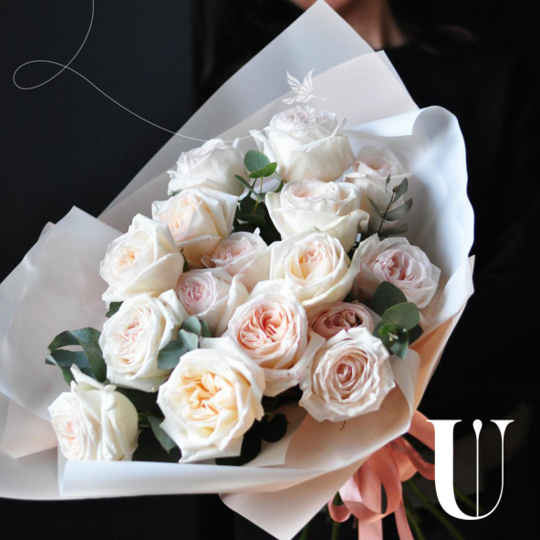 Букет из кустовых роз Лидия и роз Аваланж в дизайнерской упаковке