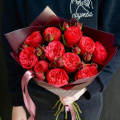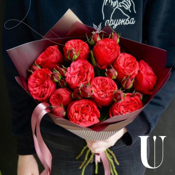 Монобукет из пионовидных роз сорта Лондон Ай в упаковке