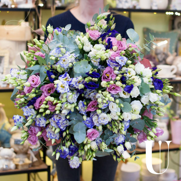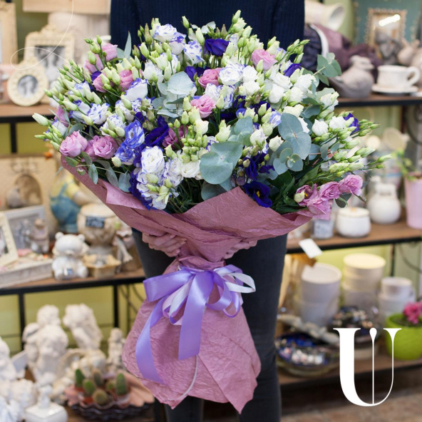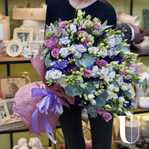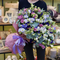 Монобукет из 49 ранункулюсов в прозрачной пленке