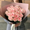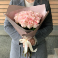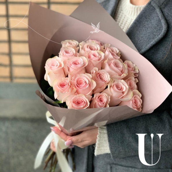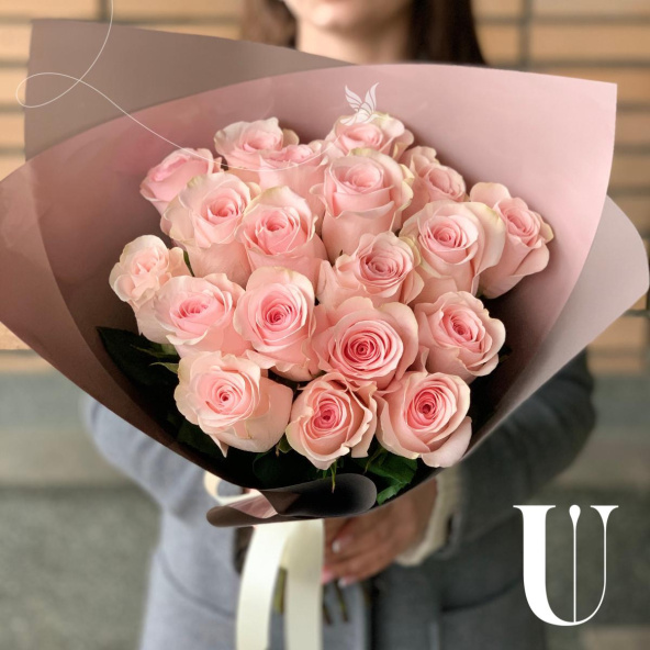 Монобукет из 7 роз Пинк Мондиаль в дизайнерской упаковке