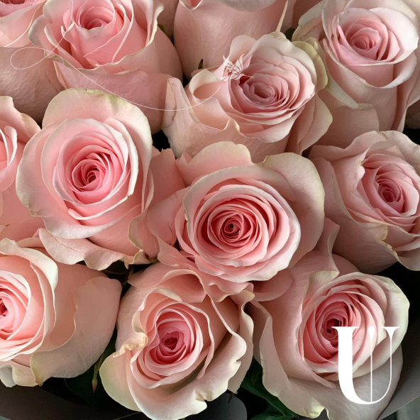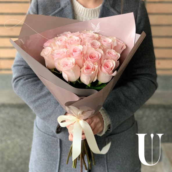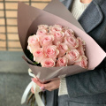 Монобукет из 11 роз Вайт Охара в розовой упаковке