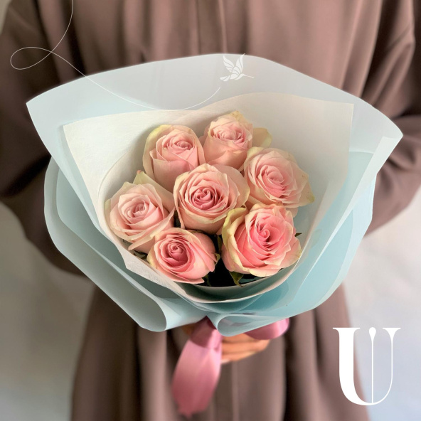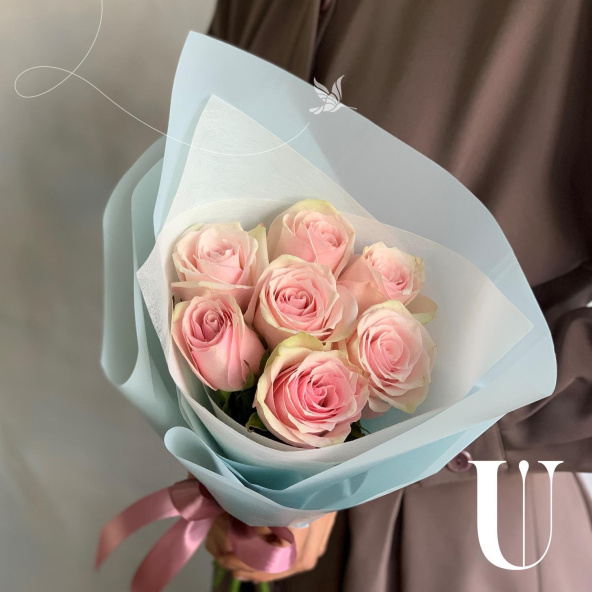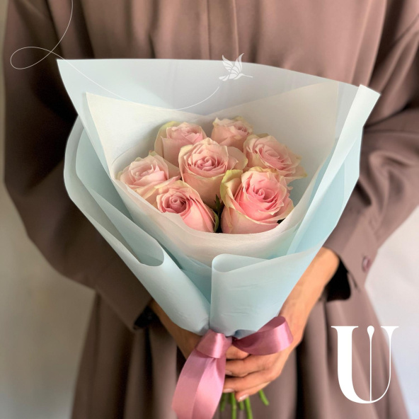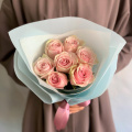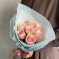 Монобукет из 11 роз микс в светло-розовой упаковке