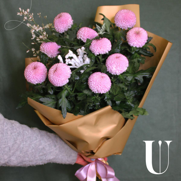 Букет из кустовых хризантем микс в дизайнерской упаковке