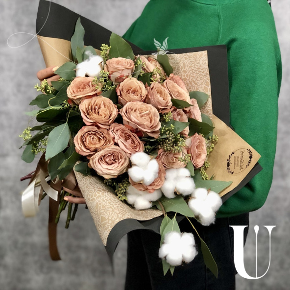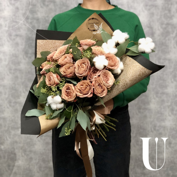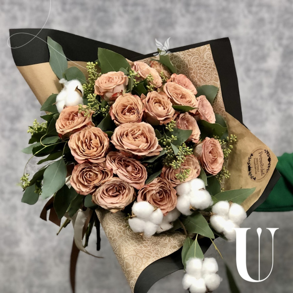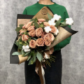Монобукет из 15 роз сорта Талея в крафтовой упаковке