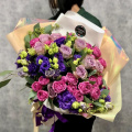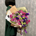 Монобукет из кустовых роз микс в крафтовой упаковке