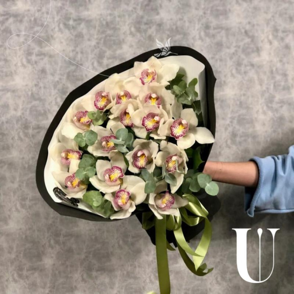 Монобукет из 15 альстромерий с зеленью в крафтовой упаковке
