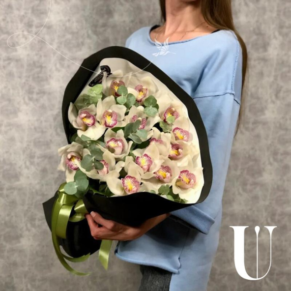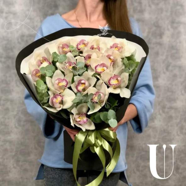 Букет из 15 кремовых гвоздик в стильной упаковке