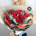 Букет из роз сорта Эксплорер 60 см в чёрной упаковке фоамиран