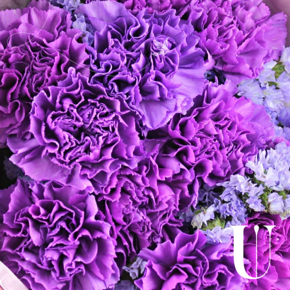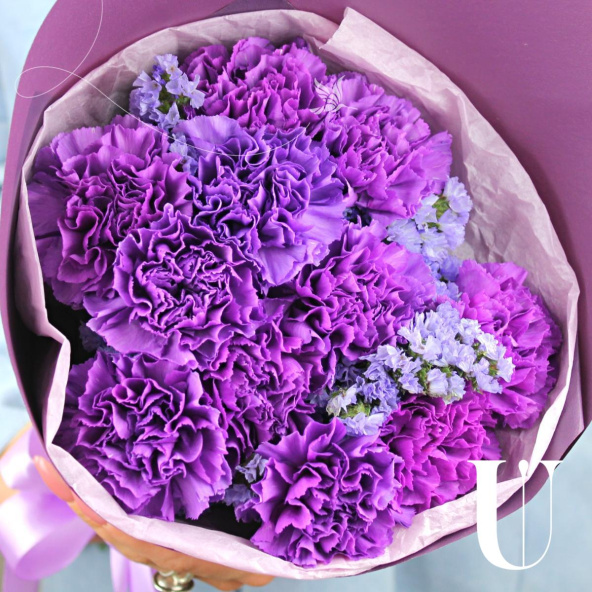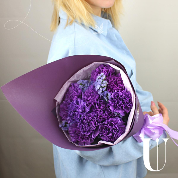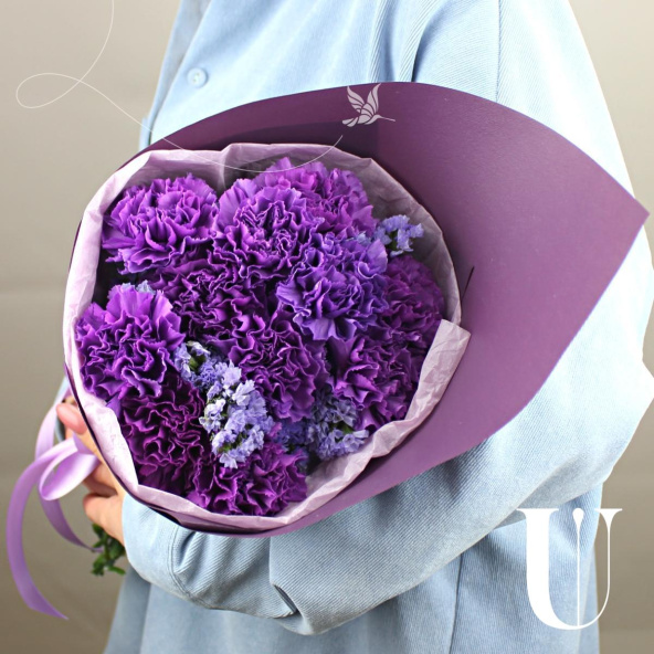 Букет из 7 фиолетовых диантусов в дизайнерской упаковке