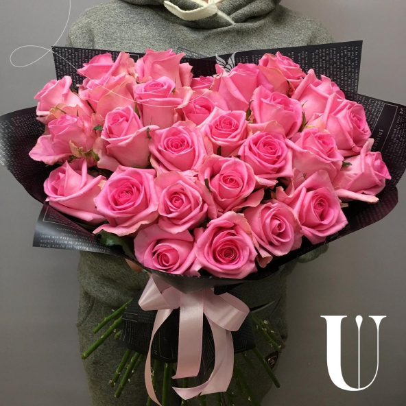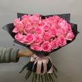 Монобукет из 25 роз сорта Космик в матовой пленке