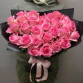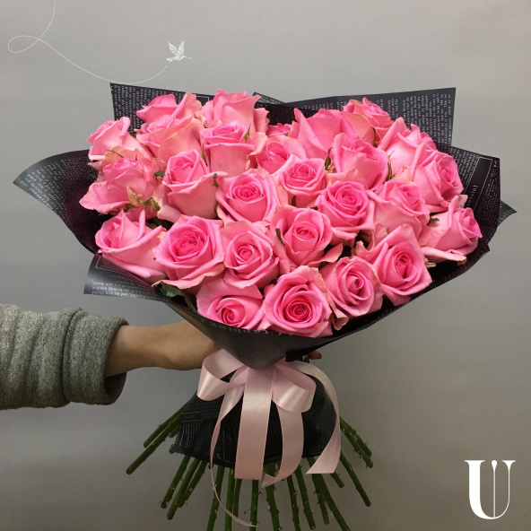 Монобукет из 7 роз Пинк Мондиаль в дизайнерской упаковке