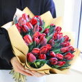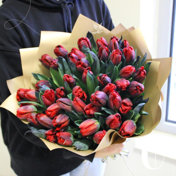 Роскошный, страстный и элегантный букет из красных французских роз сорта Нина