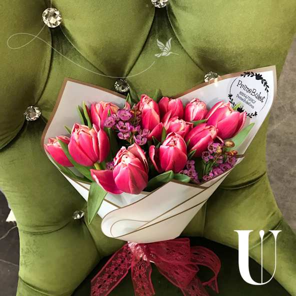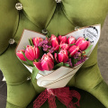 Монобукет из кремовых и розовых диантусолв в упаковке