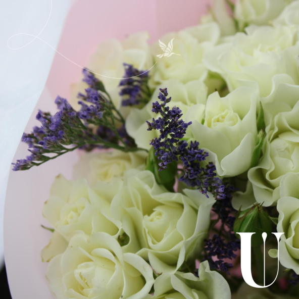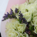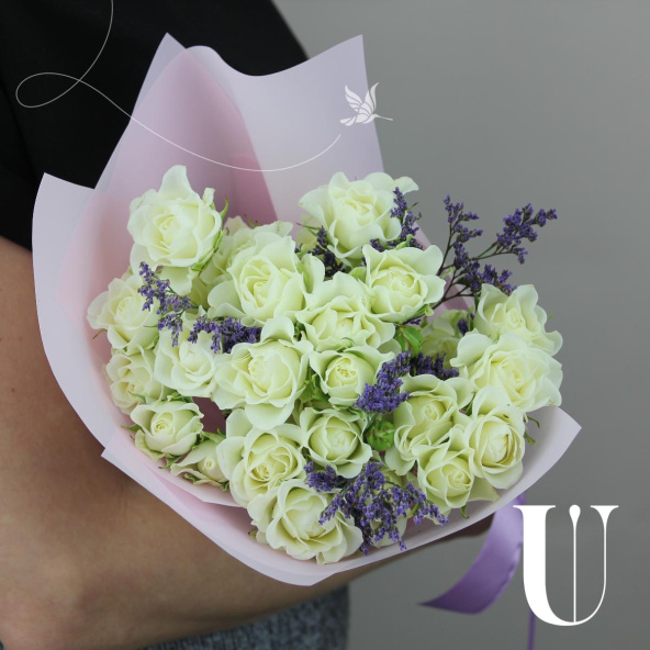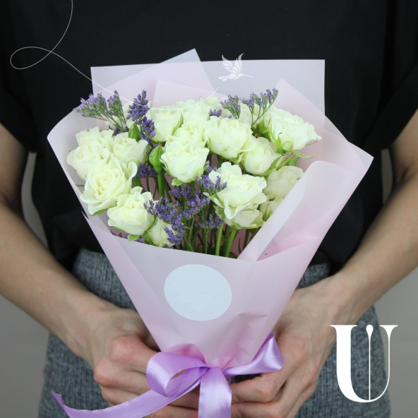 Мини-букет из белых кустовых роз в прозрачной пленке