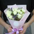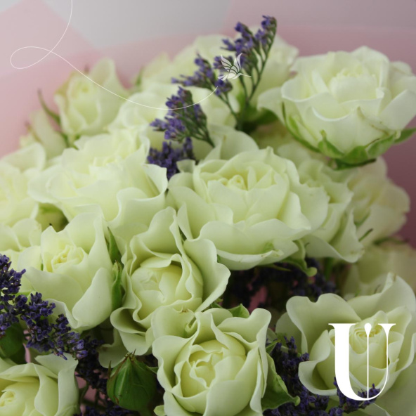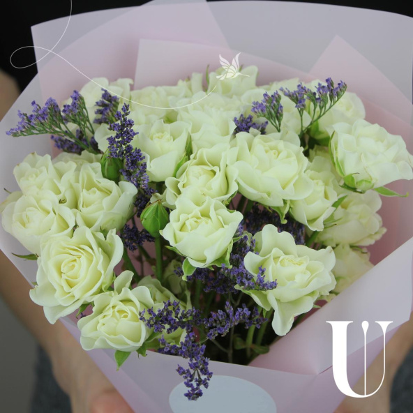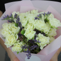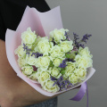 Монокомпозиция из кустовых роз в дизайнерской упаковке