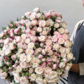 Монобукет из кустовых пионовидных роз Бомбастик в розовой упаковке