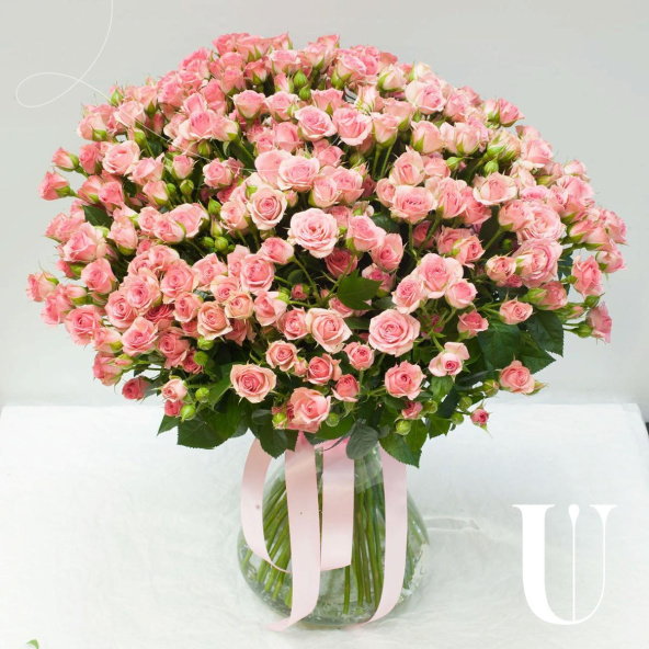 Монобукет из кремовых кустовых роз в крафтовой упаковке