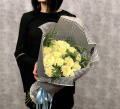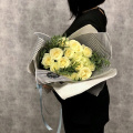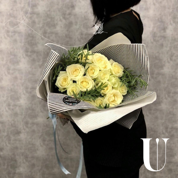 Букет из 9 пионовидных роз кремового оттенка сорта Шиммер в стильной упаковке