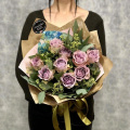 Монобукет из 15 роз сорта Талея в крафтовой упаковке