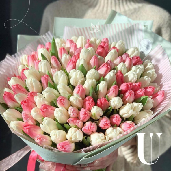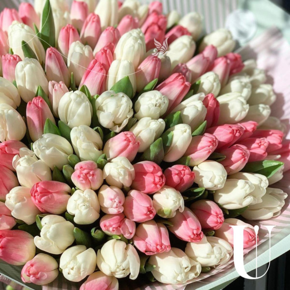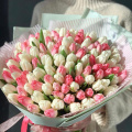 - Тюльпан, Фокстрот, бело-розовый - 51 шт