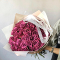 Букет из фиолетовых и розовых роз в в крафтовой упаковке
