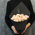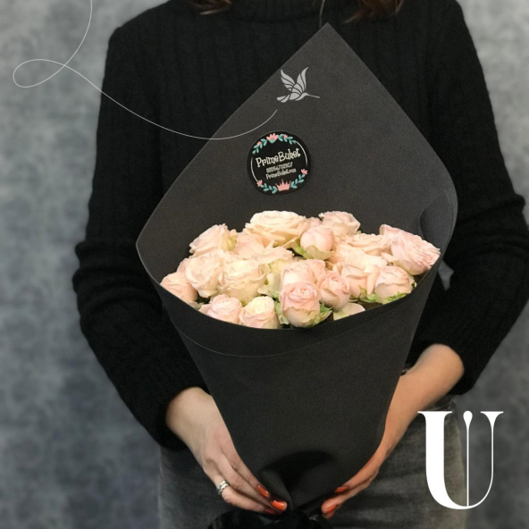 Букет из 11 розовых кустовых роз в дизайнерской бумаге