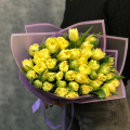 Монобукет из 9 роз сорта Кэндллайт в упаковке