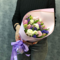 Букет из фиолетовых хризантем сорта Деми в глянцевой пленке