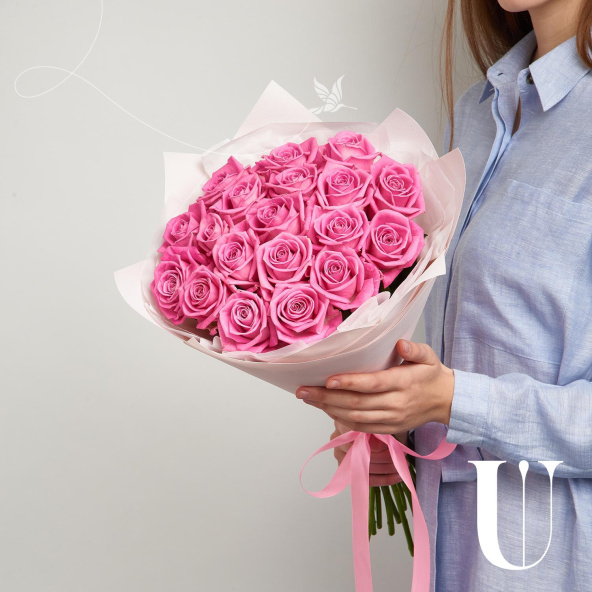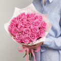 Монобукет из 25 роз сорта Аваланж в уматовой пленке