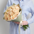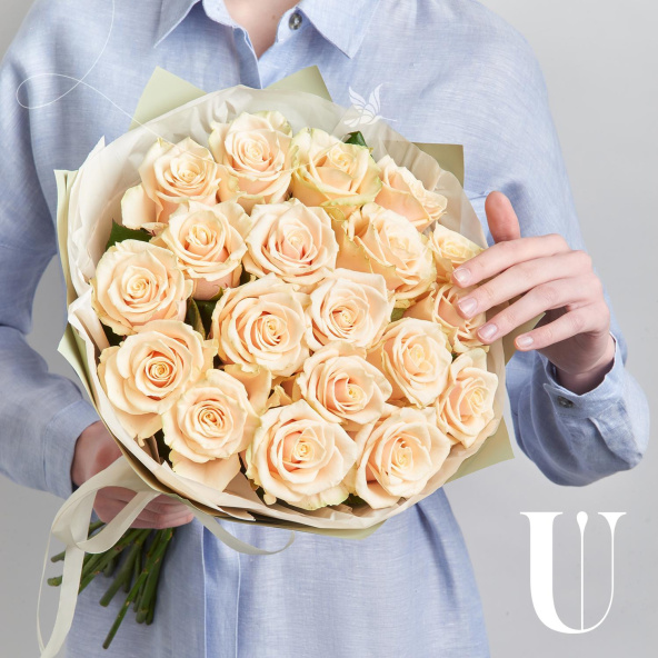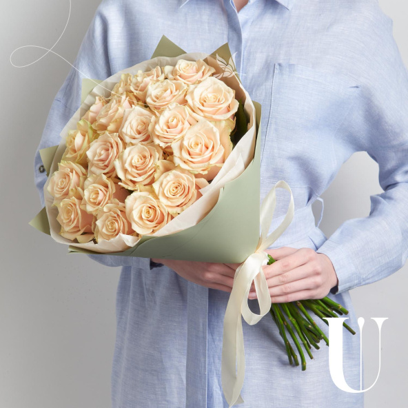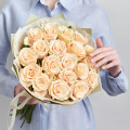 Монобукет из 25 кремовых роз в упаковке